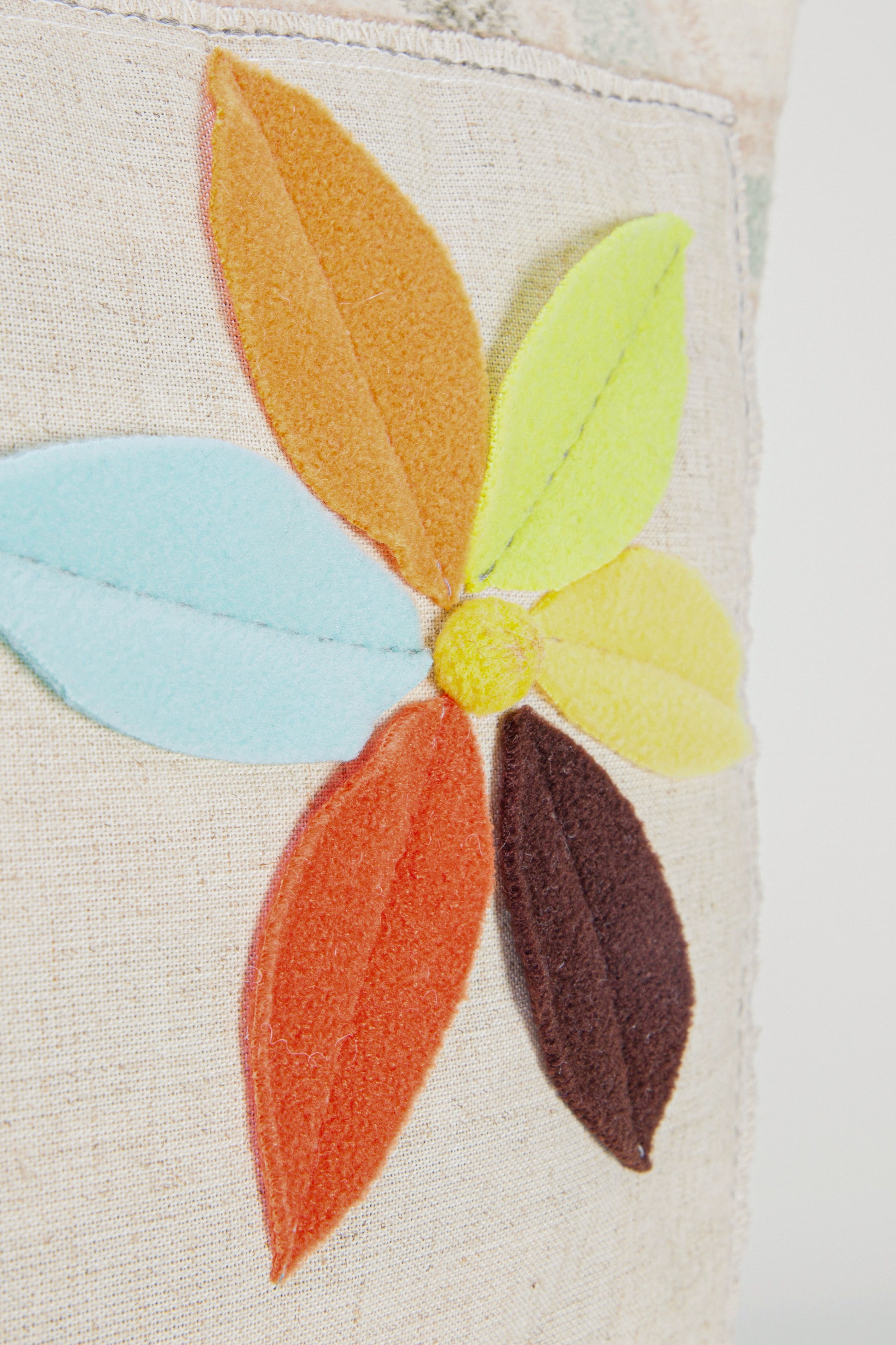 Materyal: Doğal dokuma kumaş, keçe yaprak aplikeleri, dolgun iç dolgu