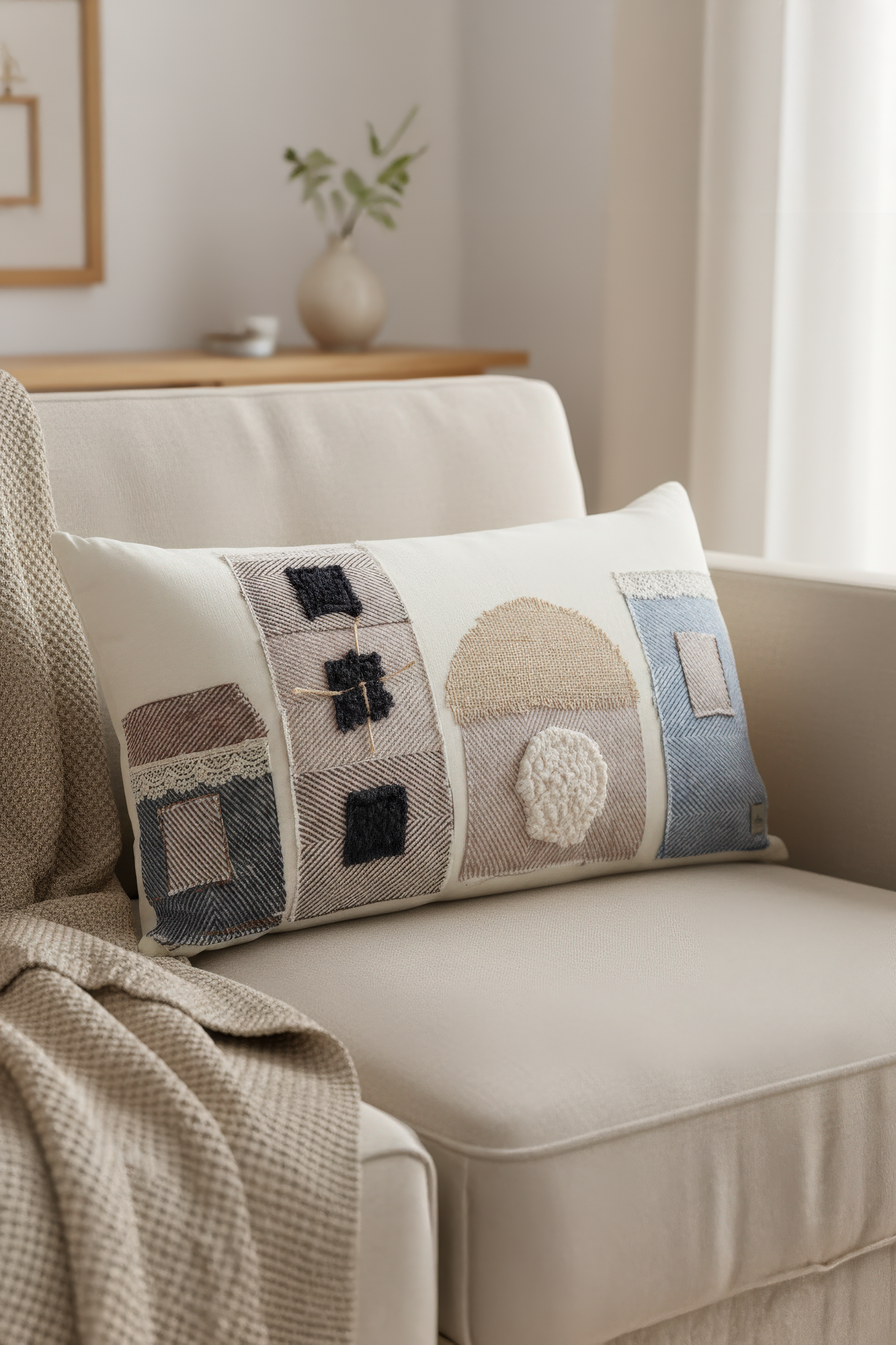 El dokuma hissiyatı veren zengin dokulu kumaşları ve tek tek işlenmiş applique ev figürleriyle tasarlanan Artisan Homestead kırlent, sıcak, samimi ve rustik bir atmosfer yaratmak isteyen yaşam alanları için seçkin bir dekor parçasıdır. Farklı dokuma yönleri, kabartmalı pencereler, tekstürel çatı detayları ve doğal ton geçişleri, ürüne tamamen el yapımı bir karakter kazandırır. Yatay formu sayesinde berjer, koltuk ve yatak üstü düzenlemelerde hem estetik hem de dengeleyici bir görünüm sunar.