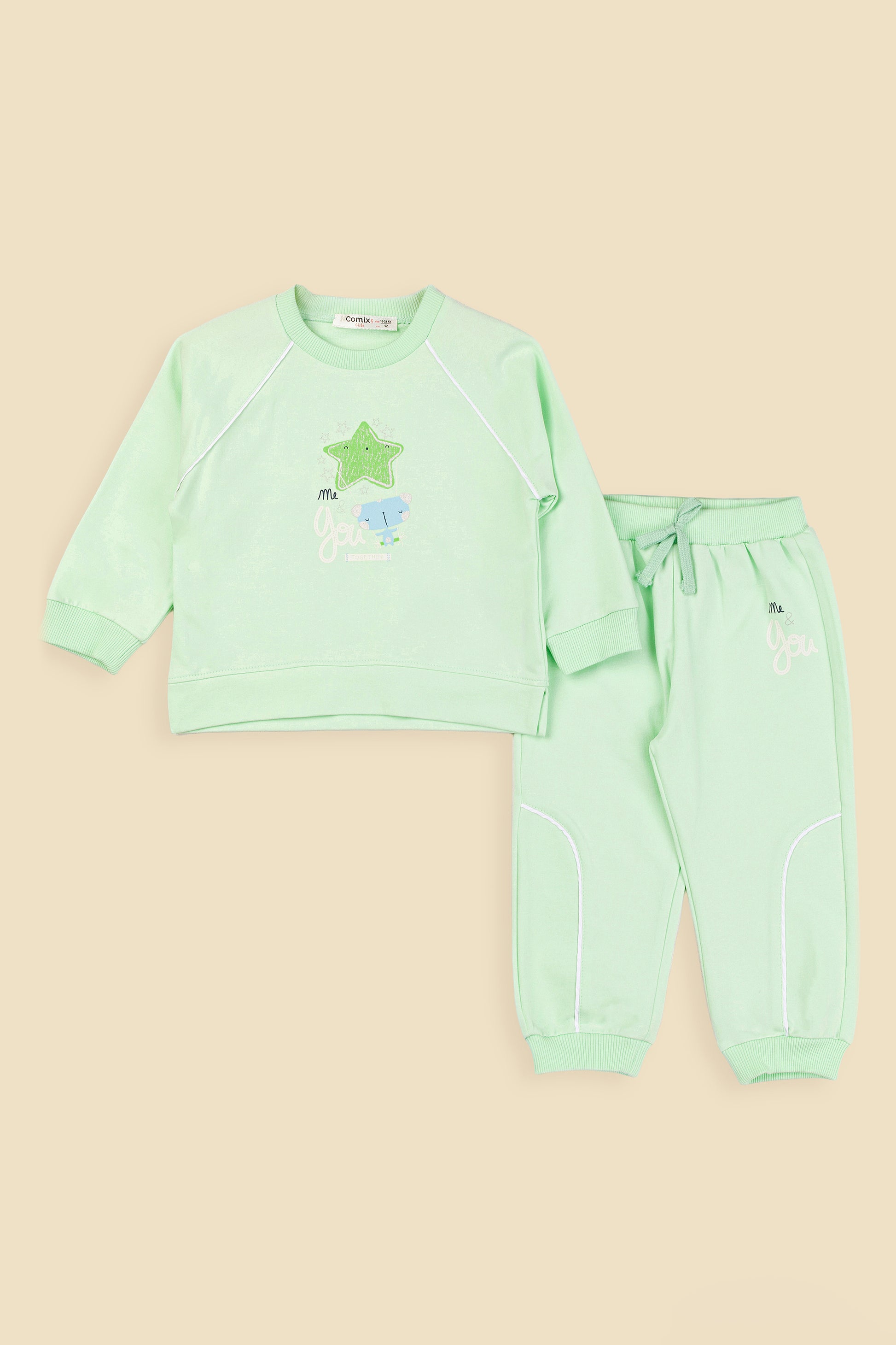 Ön kısmındaki yıldız ve karakter baskısı ile eğlenceli bir görünüm kazandıran takım, oyun saatlerinden günlük gezilere kadar her an için keyifli bir stil sunar.
