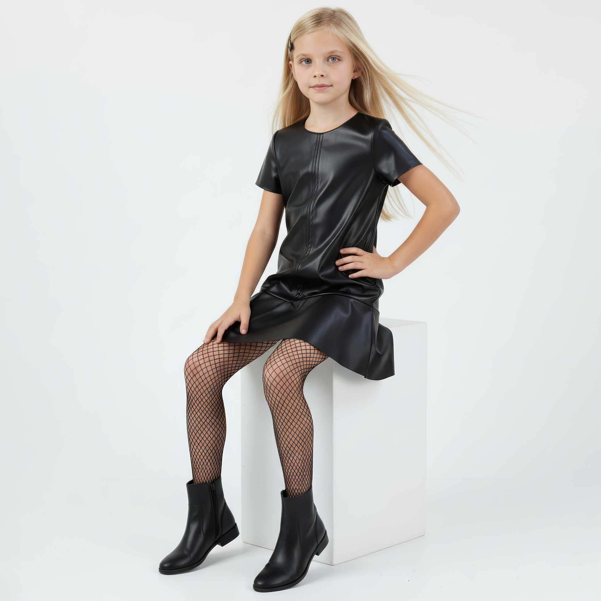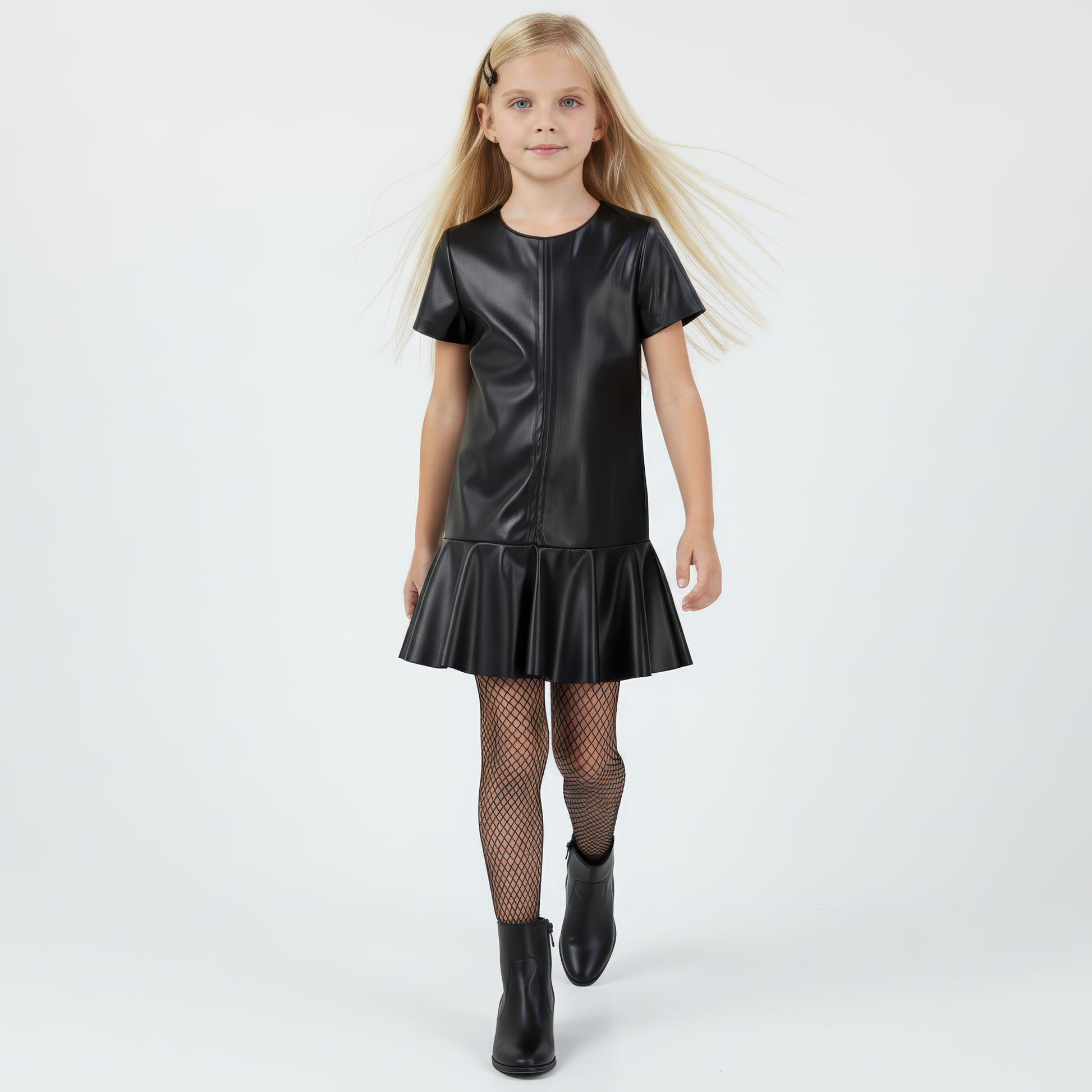 Ürün Adı: Kız Çocuk Deri Görünümlü Elbise