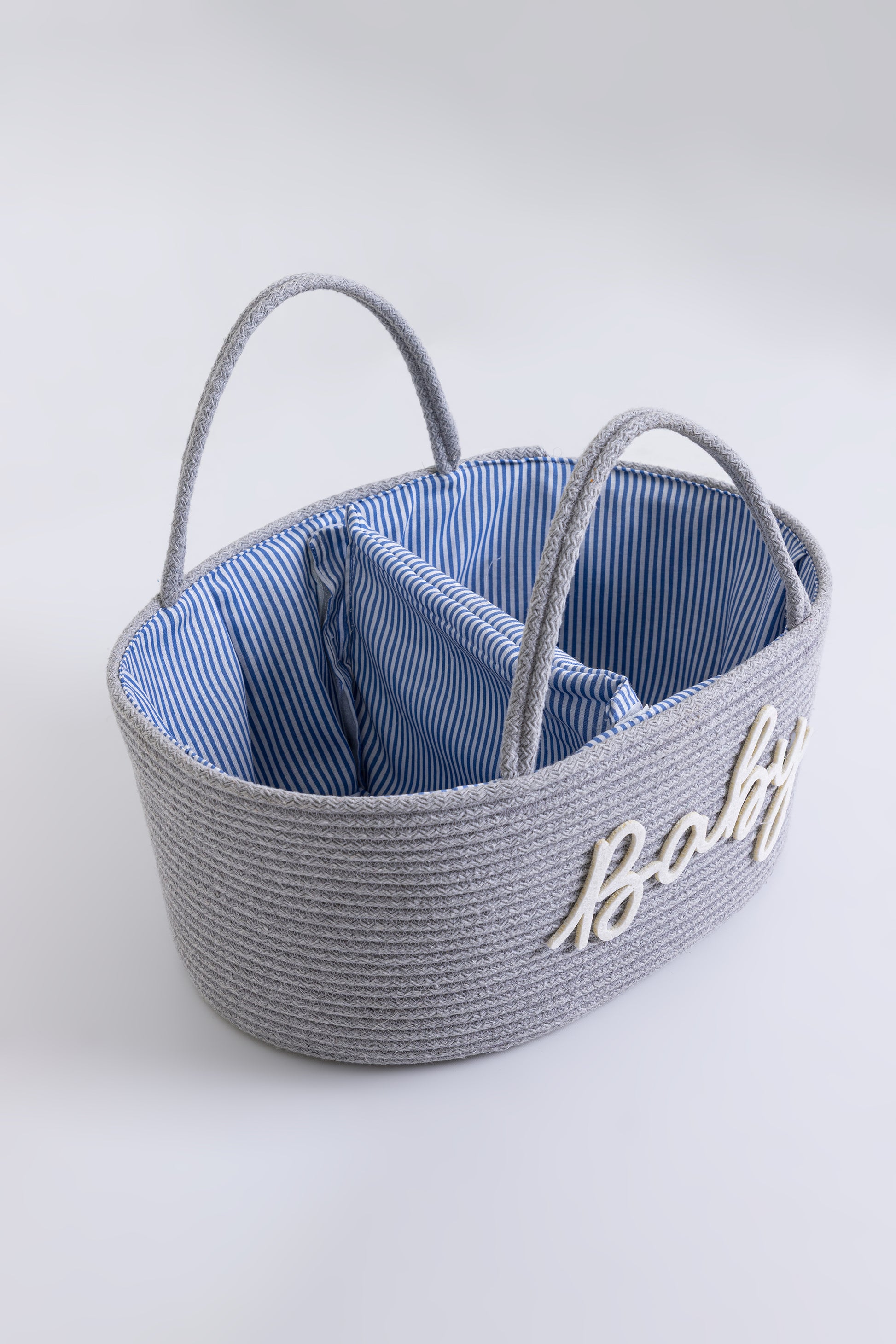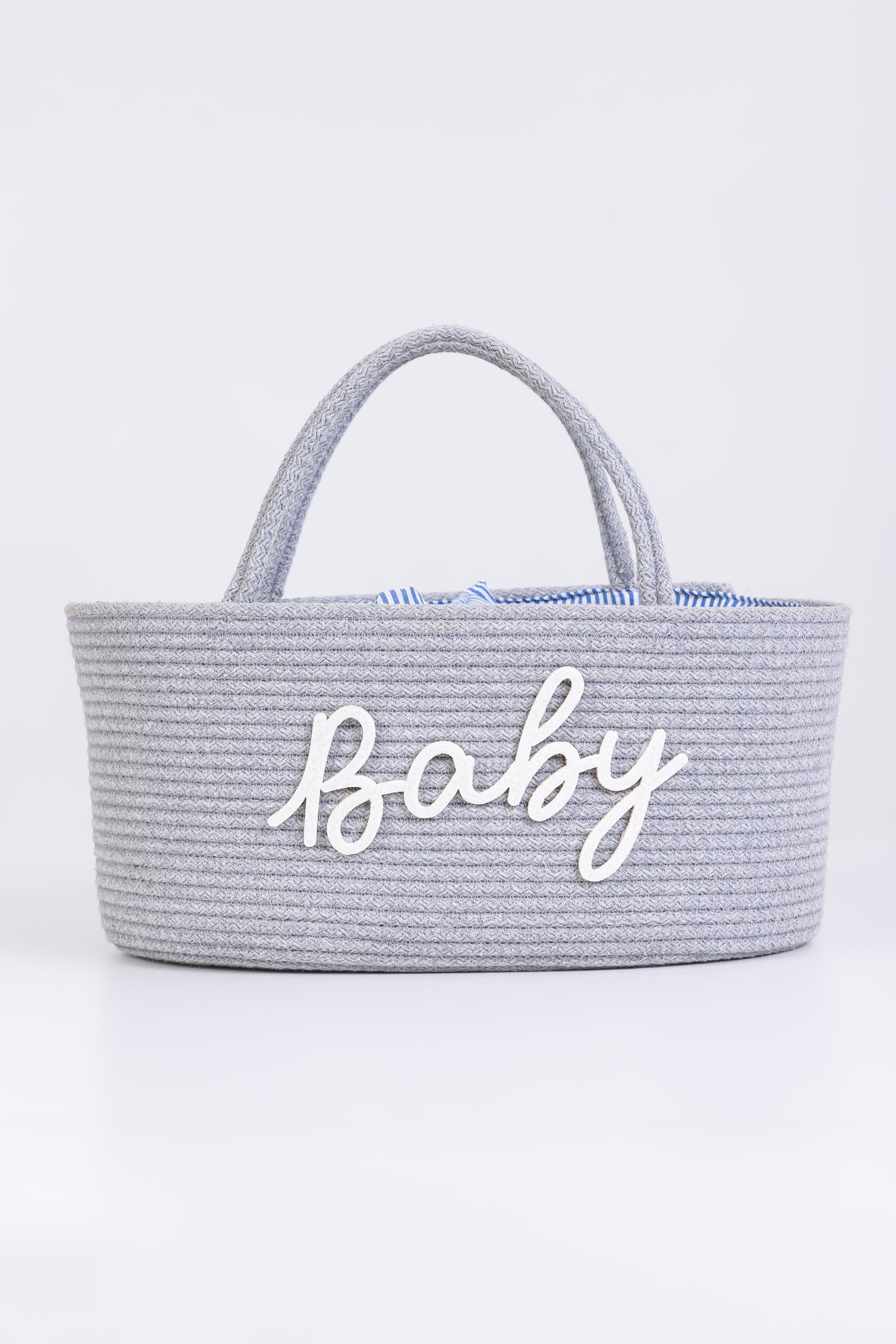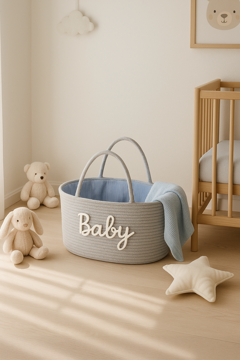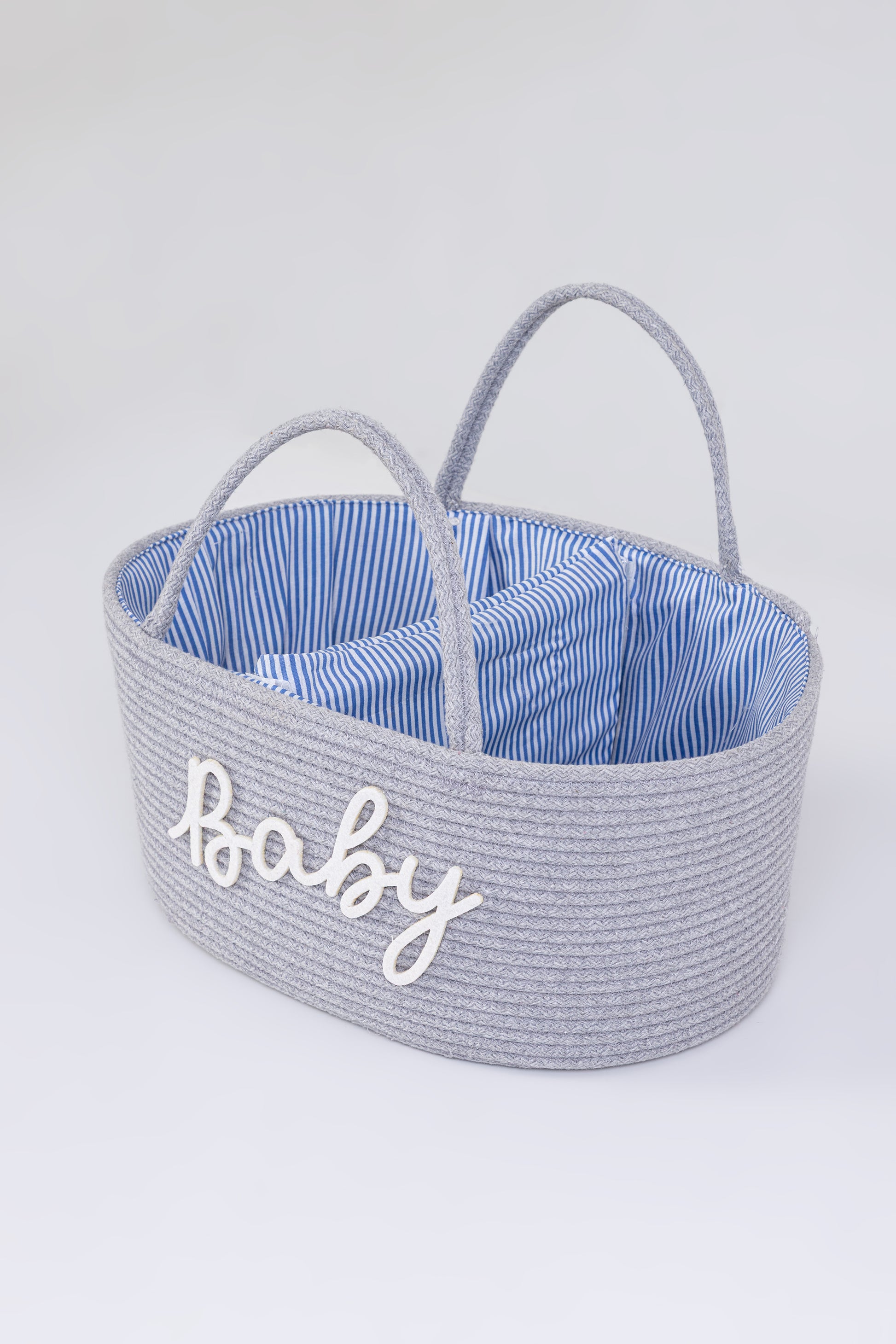 Yumuşak dokulu mavi-gri örgü kumaştan üretilmiş bu sepet, hem bebek odalarında hem de evin diğer alanlarında dekoratif ve işlevsel bir çözüm sunar. Üzerindeki beyaz "Baby" yazısı ile zarif bir tasarım detayına sahip olan bu ürün, oyuncak, kıyafet ya da bakım ürünlerini saklamak için estetik ve pratik bir alan oluşturur. Hafif yapısı sayesinde kolay taşınabilir.