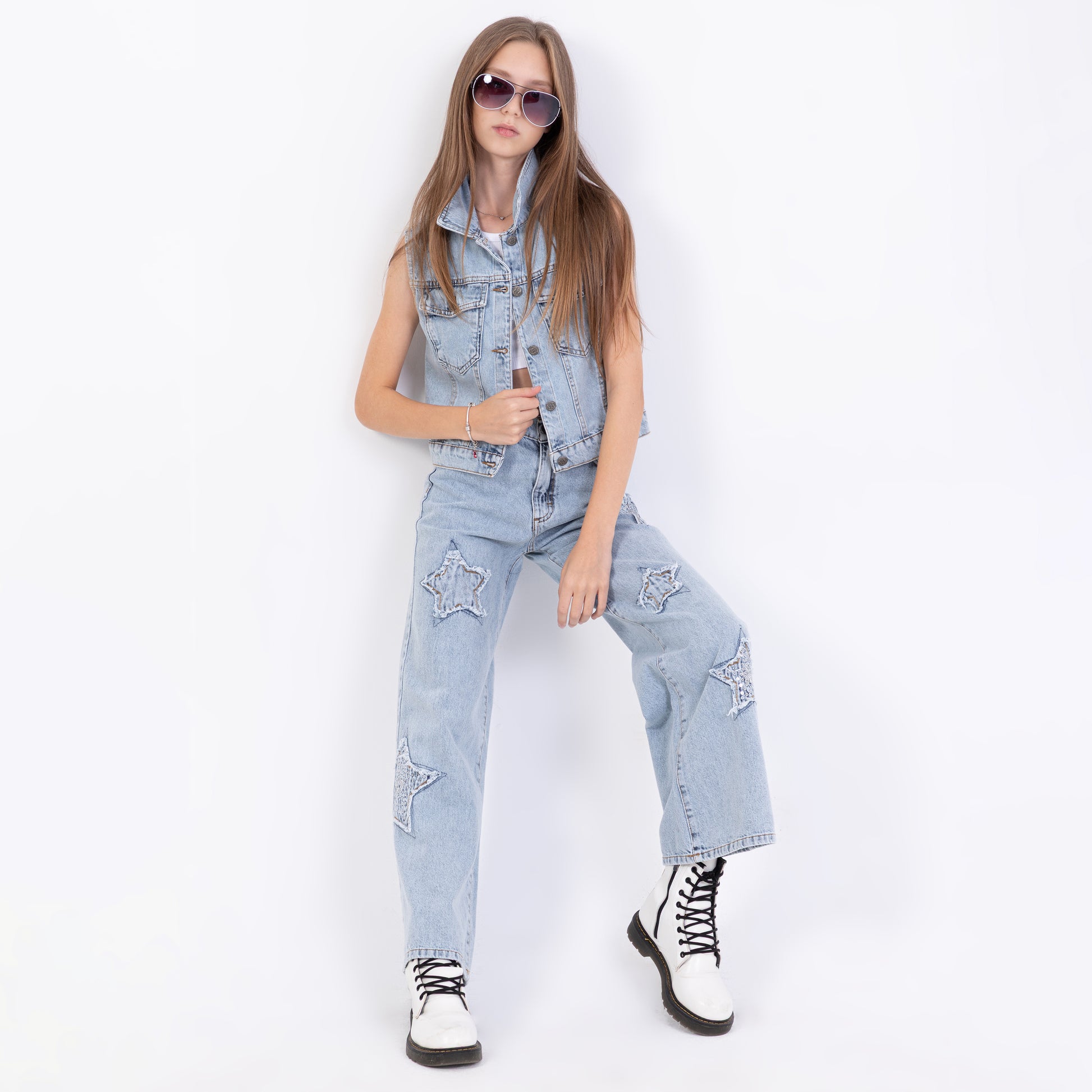 Ürün Adı: Kız Çocuk Yıldız Detaylı Kot Pantolon