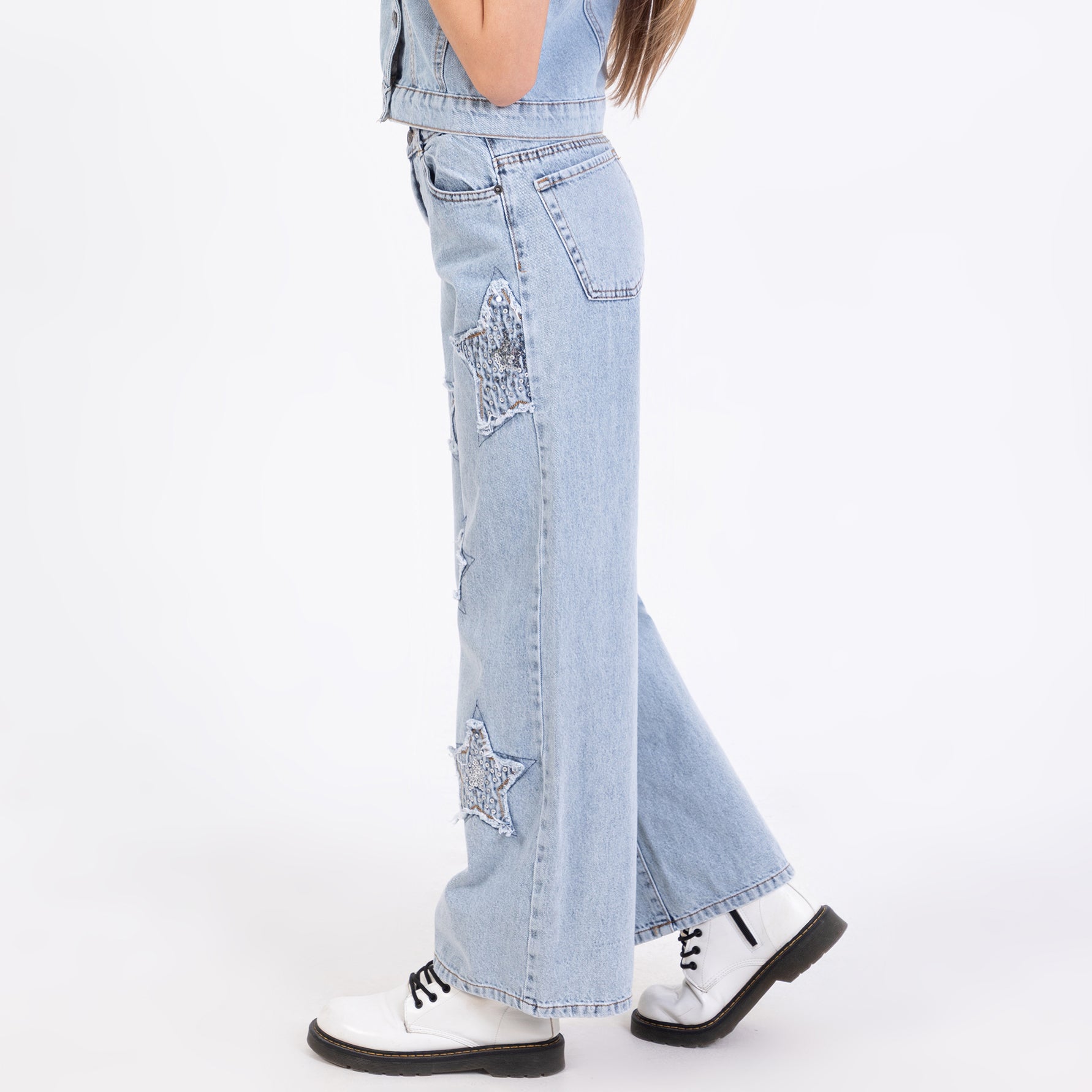 Kız Çocuk Yıldız Detaylı Kot Pantolon